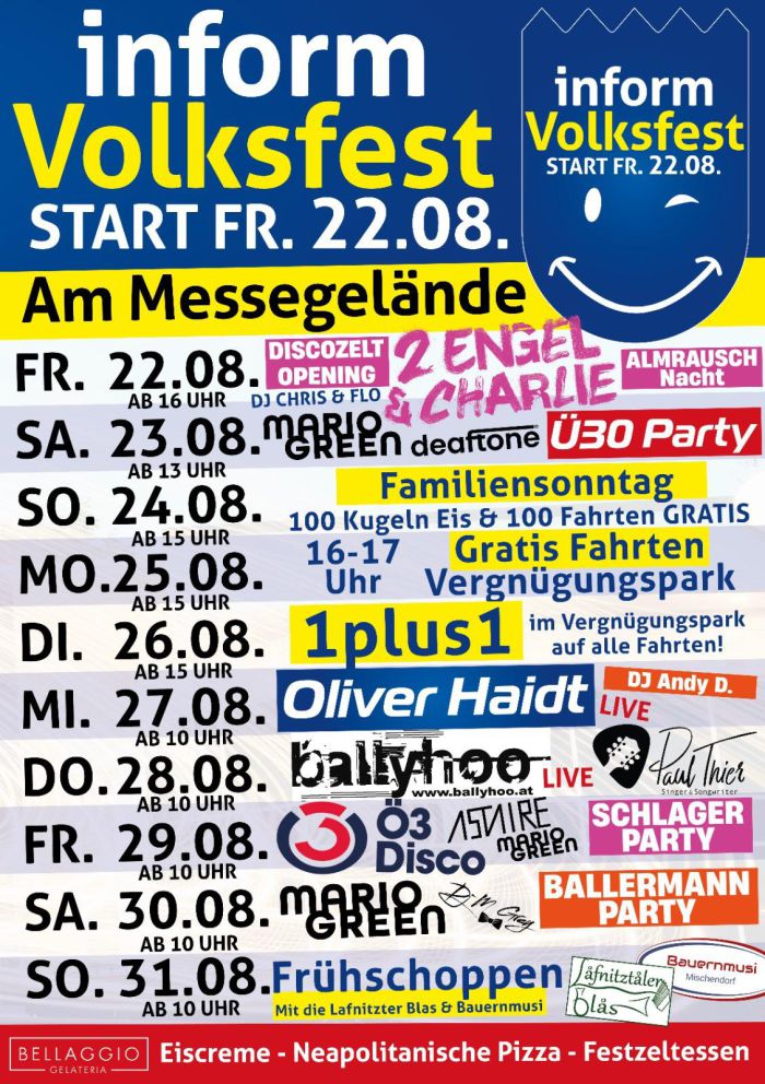 Eine INFORM Oberwart ohne Vergnügungspark – unvorstellbar! Traditionell eröffnet dieser bereits ein paar Tage vor der Messe – am Freitag, dem 22. August und wird bis Sonntag, dem 31. August zum gesellschaftlichen Treffpunkt. Ein buntes Treiben pulsiert zwischen nostalgischem Rodeo und moderner Unterhaltung.