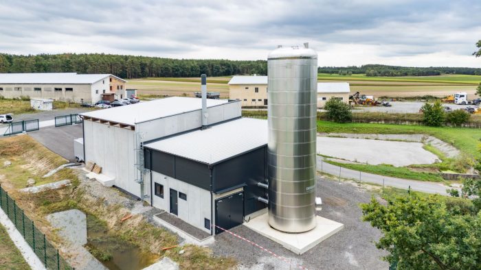 Zusätzlich wurde ein Pufferspeicher mit einem Speichervolumen von 100 m³ aufgestellt. Dieser dient dazu, die vorhandene Abwärme zwischenzeitlich zu speichern. Mit dem Speicher wird in den Sommermonaten, sowie in der Übergangszeit die erforderliche Wärme für das Fernwärmenetz nach Unterfrauenhaid abgedeckt.