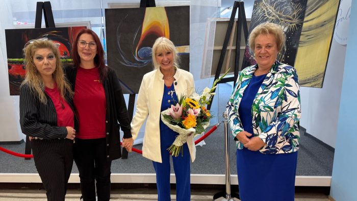 Im Rahmen der Eröffnung überreichte Frau Leser der Volkshilfe Burgenland eines ihrer Kunstwerke als Geschenk. Dieses Bild wird im Laufe der Ausstellung versteigert, und der gesamte Erlös kommt direkt dem Sonnenmarkt Oberpullendorf zugute – einer Einrichtung, die sozial benachteiligten Menschen durch leistbare Einkaufsmöglichkeiten hilft und gleichzeitig Arbeitsplätze für Menschen in schwierigen Lebenssituationen schafft.