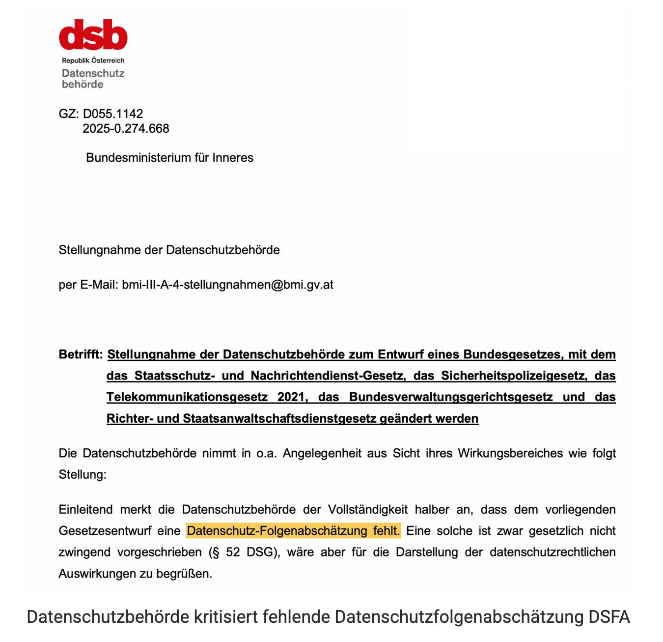 Im September wurde das Bundesgesetzblat (BGBl. 54/25) am 29.9.29 beschlossen. Es ebnet jetzt als gesetzliche Grundlage den Weg des Staatstrojaners zur Messengerüberwachung. Was immer noch fehlt ist die Datenschutzfolgenabschätzung (DSFA). Dies wurde auch durch die Datenschutzbehörde bereits im Stellungnahmeverfahren des Parlaments bemängelt.