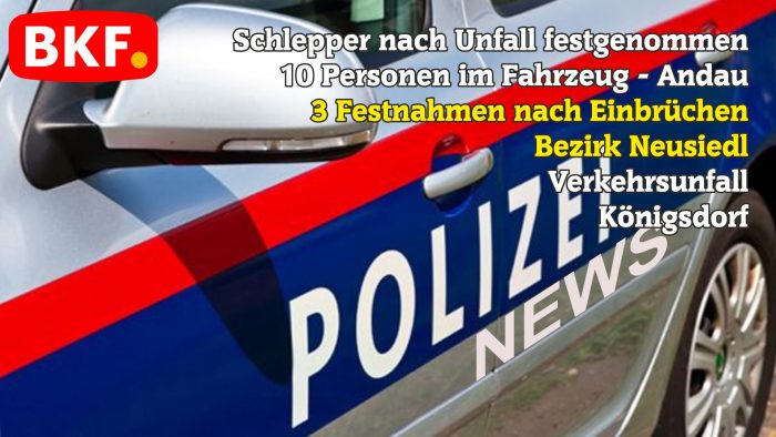 Am 13.10.2025, kurz nach 00:00 Uhr, verfolgte die ungarische Polizei beim Grenzübergang in Andau ein Fahrzeug mit ungarischem Kennzeichen, welches sich der Anhaltung entzogen hatte und in Richtung Andau unterwegs war. Im Ortsgebiet verlor der Lenker aus Pakistan die Kontrolle über das Fahrzeug und prallte gegen die Mauer eines landwirtschaftlichen Gebäudes. Dabei wurde er im Fahrzeug eingeklemmt und unbestimmten Grades verletzt. Im Fahrzeug befanden sich insgesamt zehn Personen (drei türkische – zwei männliche, eine weibliche und sieben afghanische Staatsbürger – zwei männlich, fünf weibliche – davon zwei Mädchen im Alter von 7 und 10 Jahren), welche er illegal in das Bundesgebiet transportierte. Sie wurden ebenfalls unbestimmten Grades verletzt. Durch die Rettung wurden die verletzten Männer und Frauen in drei Krankenhäuser (AKH, Donauspital und Eisenstadt) verbracht. Der im Fahrzeug eingeklemmte Schlepper wurde von der Feuerwehr Andau aus dem verunfallten KFZ geborgen und anschließend mit dem Rettungshubschrauber in das Krankenhaus Wr. Neustadt verbracht. Die Erhebungen der P0lizei laufen.