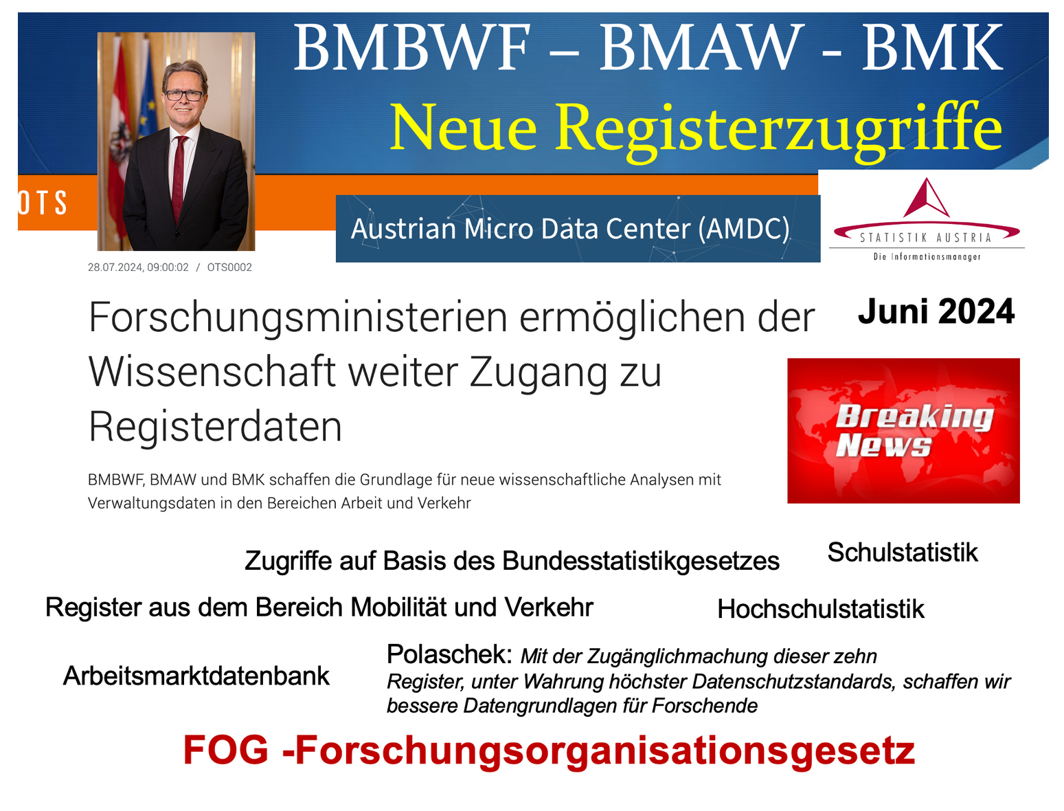 Die Patienten können über die ID-Austria oder eine persönliche Vorsprache bei der ELGA Ombundsstelle einen OptOut aus den Register eBefunde und eMedikamentation verfügen. Es ist auch möglich nur Teilbereiche an Befunden und Informationen auszublenden, wenn dies der Patient persönlich wünscht. Alle Bürgerregisterdaten von 9 Millionen Österreichern werden ab 1. Juli 2026 bei Austrian Micro Data Center „angebunden“.  Unter Registern im Sinne des Forschungsorganisationsgesetzes (FOG) sind sämtliche Verzeichnisse, Datenbanken oder ähnliche Anwendungen oder Verarbeitungsplattformen zu verstehen, die bundesgesetzlich vorgesehen sind. Regierungsprogramm: Ausbaumöglichkeiten des Austrian Micro Data Center (AMDC).