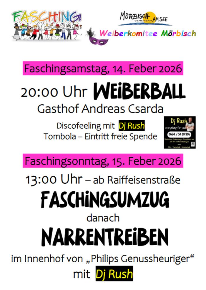 Faschingsveranstaltungen in Mörbisch/See 23. Januar 202623. Januar 2026 Mörbisch, 23. 1. 2026 Post Views: 961