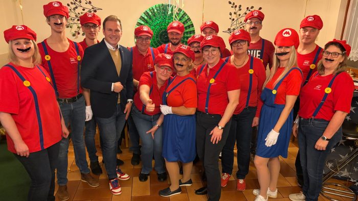 Unter den Ehrengästen befand sich auch Landtagsabgeordneter Fabio Halb. Zahlreiche maskierte Besucherinnen und Besucher sorgten gemeinsam mit einer fantasievollen „Super Mario“-Dekoration für eine ausgelassene und fröhliche Faschingsstimmung.